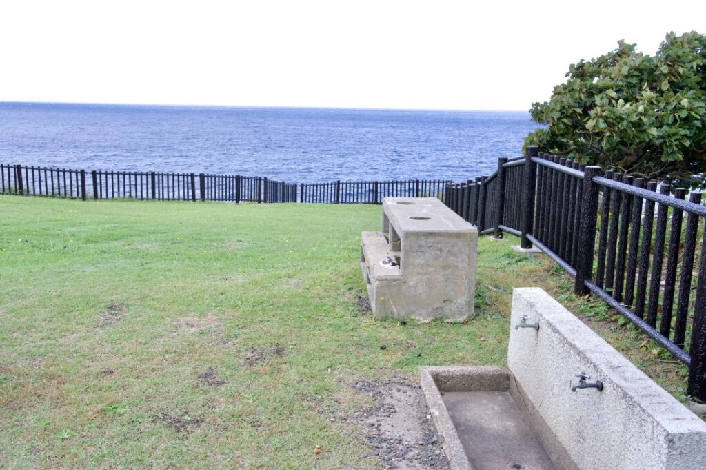 かまど、水道といった簡易的な設備もある。高野崎キャンプ場と同じく、風の強い日の利用には注意が必要だが、眺望の良さは抜群だ。